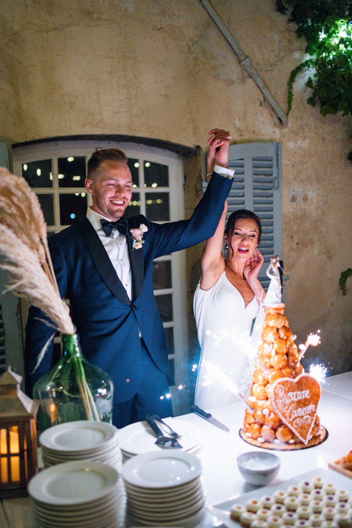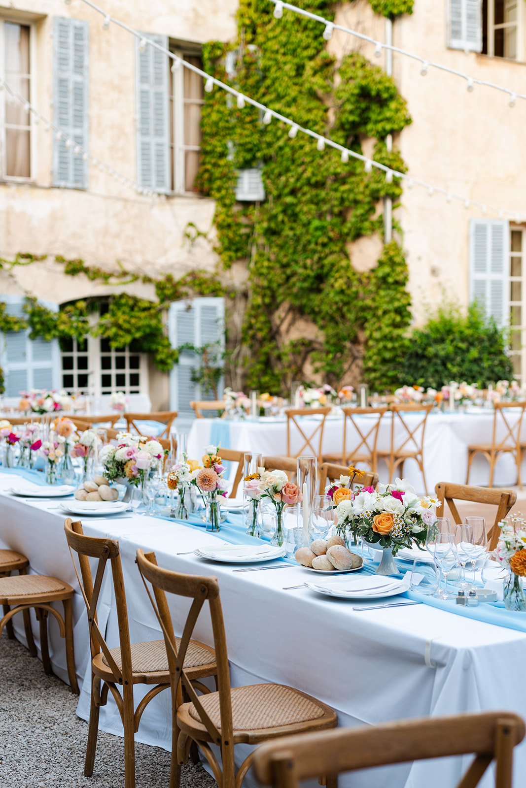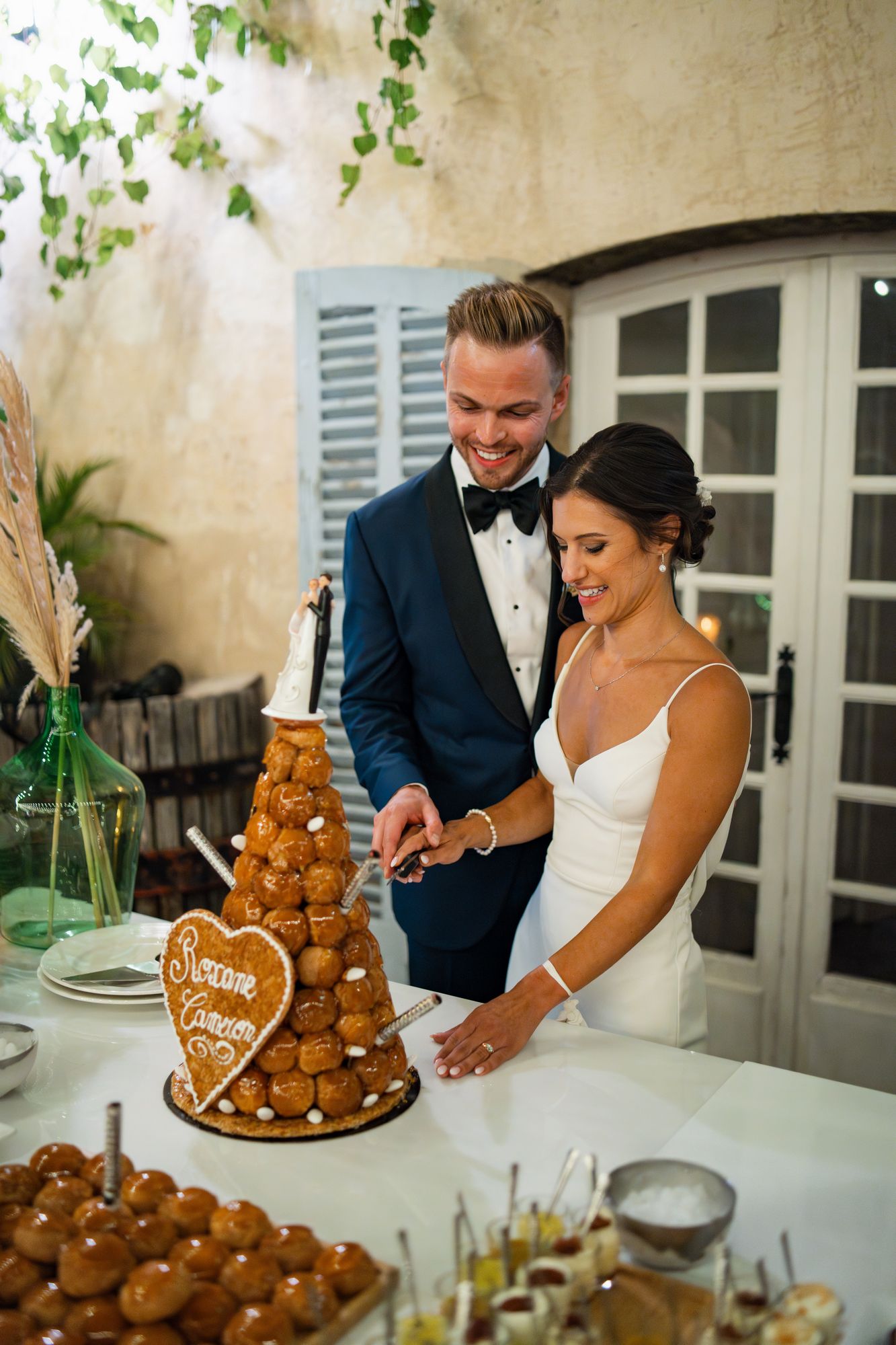 Beautiful wedding at Château de Robernier. Roxane & Cameron had a wonderful wedding party with their families and friends surrounded by the beauty of this sublime venue. They had an beautiful outdoors ceremony in front of the château followed by the cocktail and then dinner in the always cosy courtyard.
