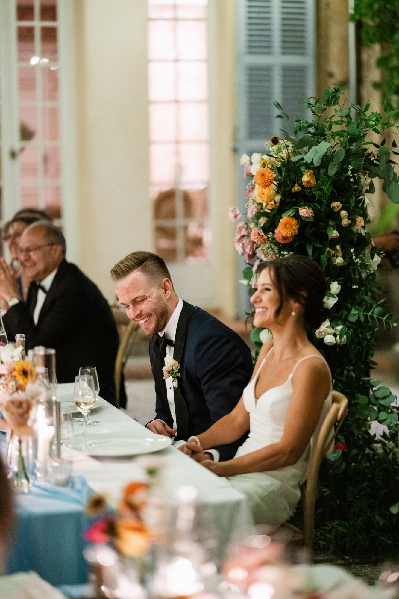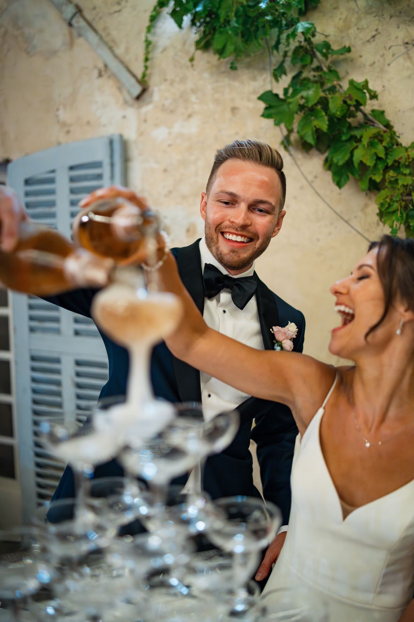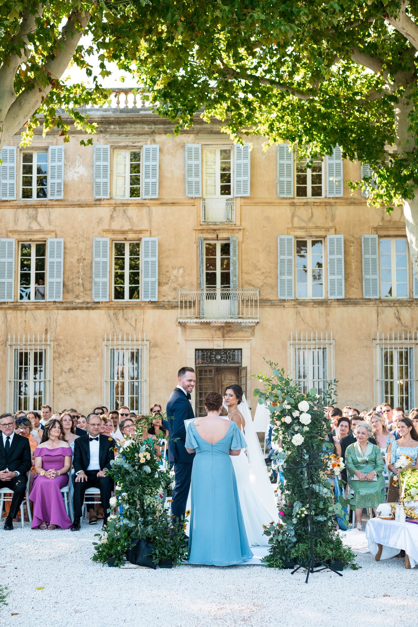 Beautiful wedding at Château de Robernier. Roxane & Cameron had a wonderful wedding party with their families and friends surrounded by the beauty of this sublime venue. They had an beautiful outdoors ceremony in front of the château followed by the cocktail and then dinner in the always cosy courtyard.